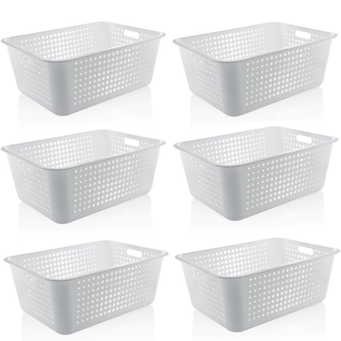 6 Caixas Organizadoras Maxi Grande Organize Cesto Plástico 40l Branco Branco