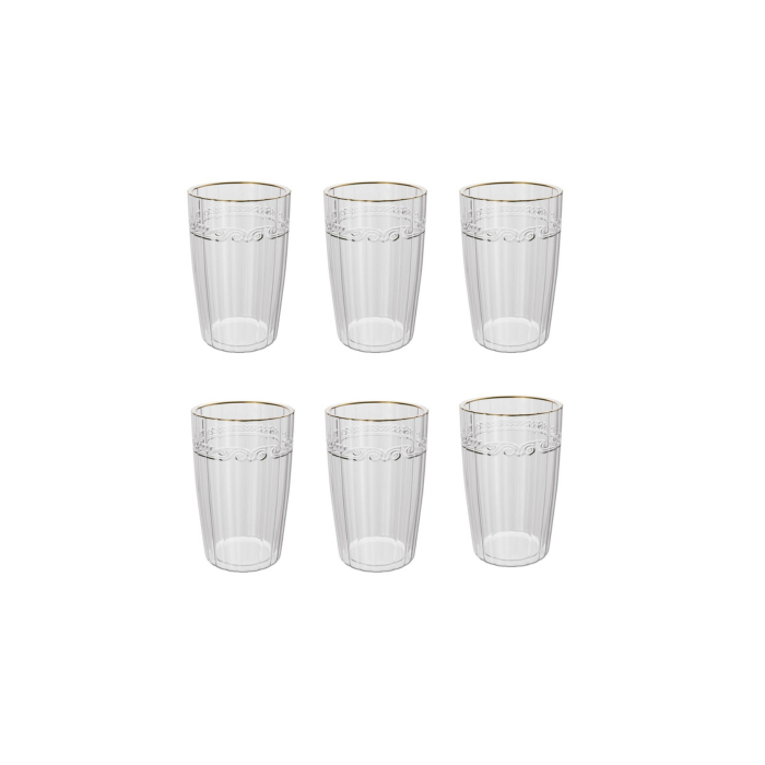 6 Copo Alto Lyor Imperial de Cristal com Fio de Ouro 370ml