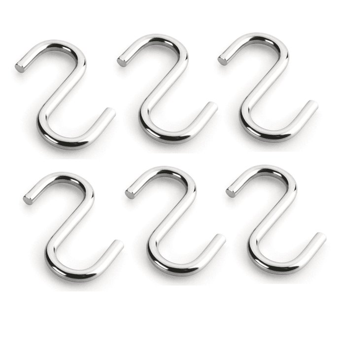 6 Ganchos P/ Pendurar Utensílio Barra De Cozinha Aço Cromado