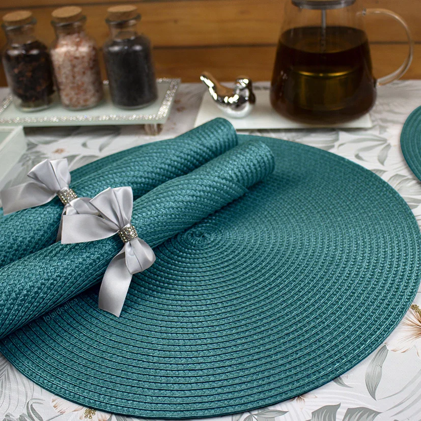6 Jogo Americano Redondo Mesa Posta Sousplat Luxo Pvc Maz3 Azul Petróleo