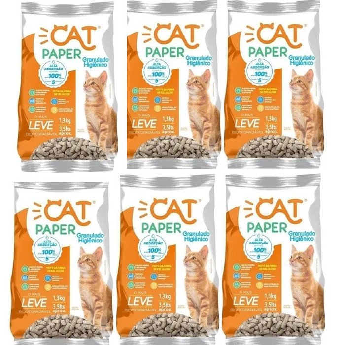 6 pacotes Granulado Higiênico para Gatos Cat Paper 1,3kg BIODEGRADÁVEL (descarte em vaso sanitário)