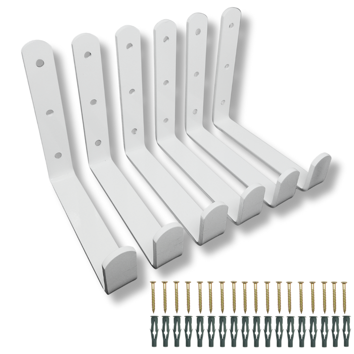 6 Suportes Design Gancho Multiuso Mangueira Escada Organização Externa Fixação de Parede Branco Branco