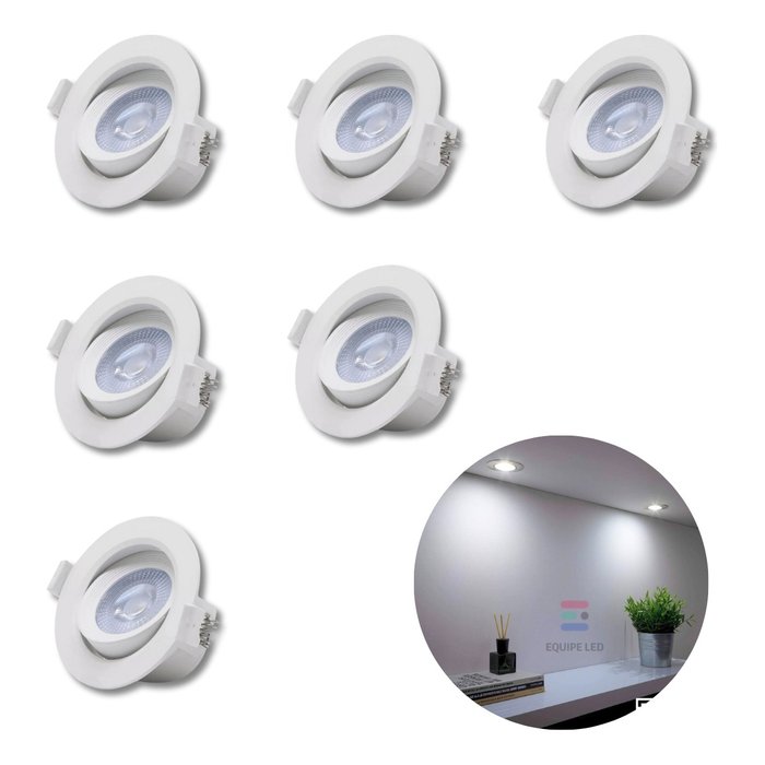 - 6 X Spot Redondo Embutir Sanca 7w Direcionavel Mr11 Dicroica Branco Frio