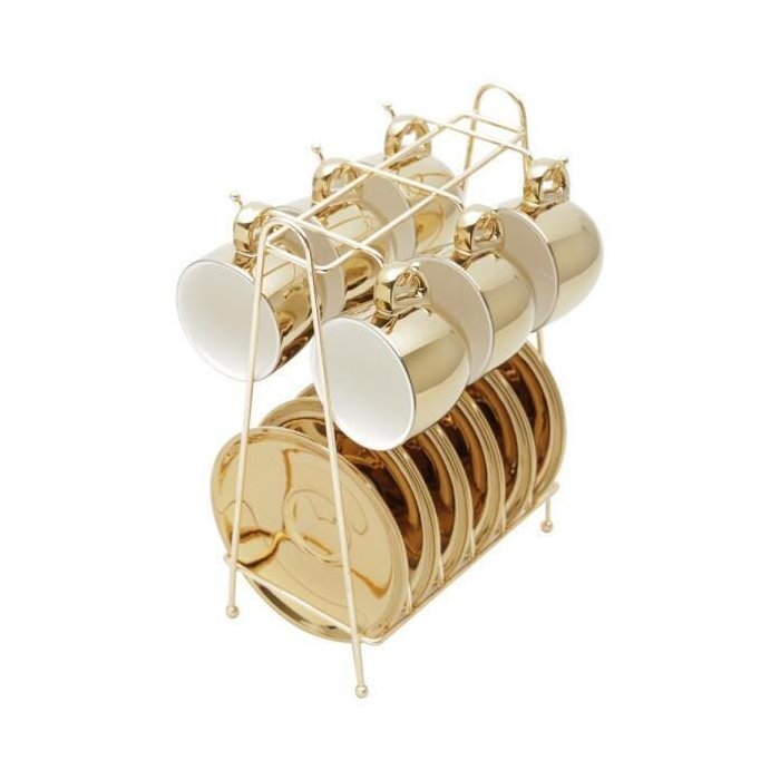 6 xícaras com pires dourado porcelana nespresso dolce gusto