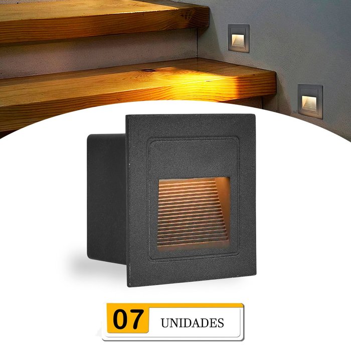 7 Balizador Corredor de Embutir Preto Quadrado Externo Lup51 Preto