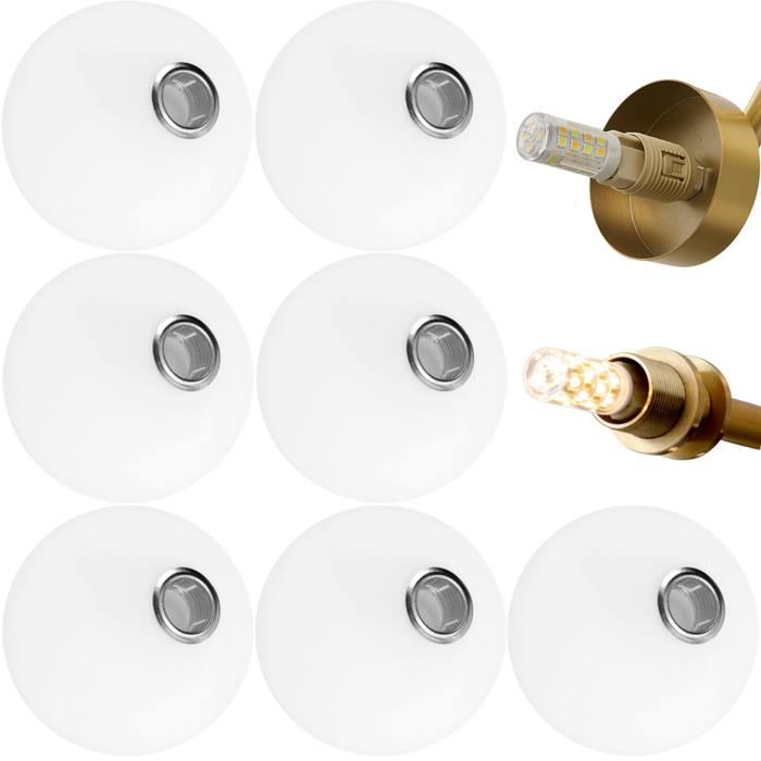 7 x Globos Vidro Fosco Leitoso 10cm com rosca para soquete G9.