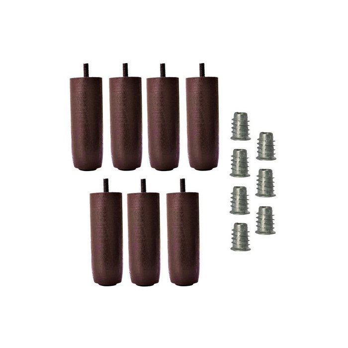 7 Pés Madeira Marrom C/ Bucha Tdc Cama Box Baú Casal 12cm