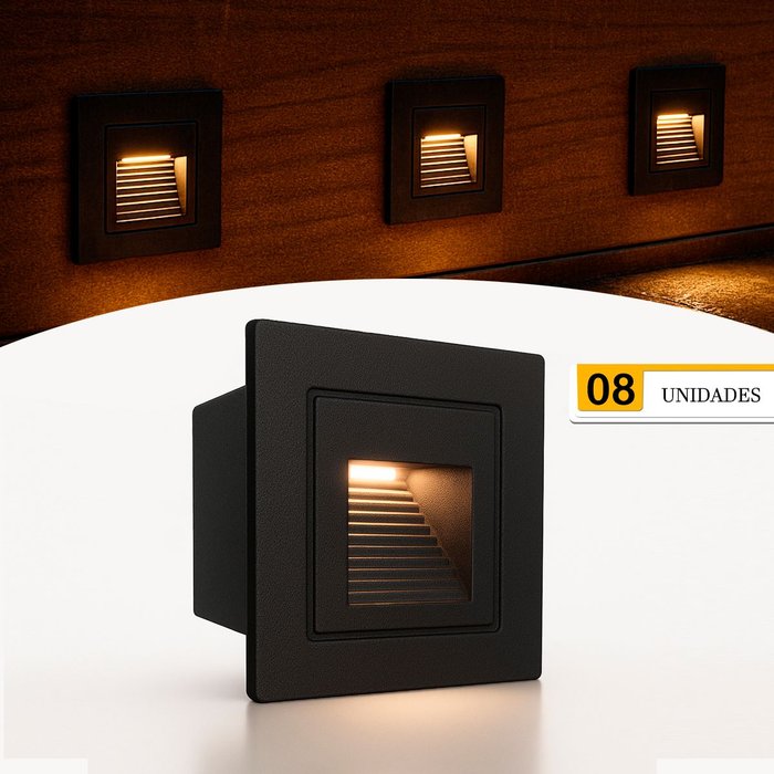 8 Balizador Area Externa Embutir Parede Preto Mini Led Lup76