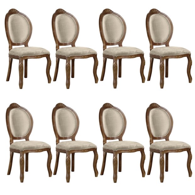 8 Cadeira Medalhao Madeira Maciça Design Ingles Luxo Poltrona Entalhada Renascentista Natural Ingles