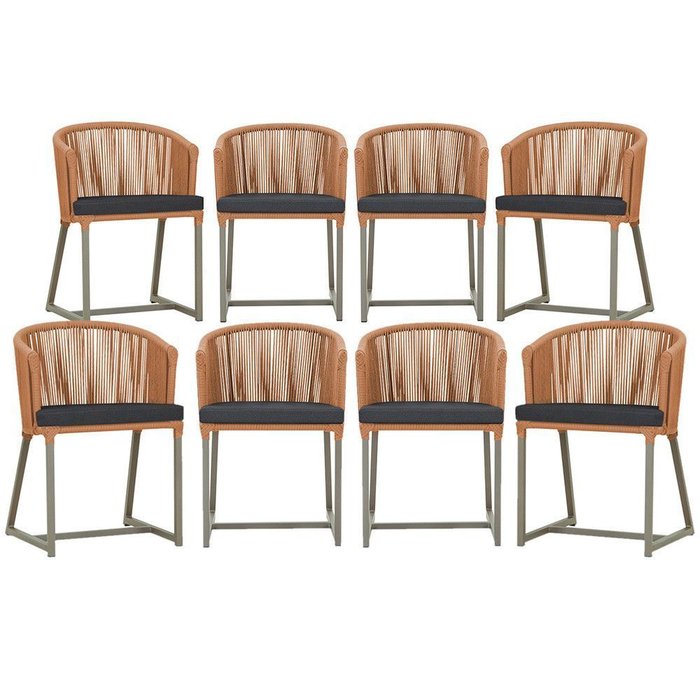 Combinando estilo e resistência, esta cadeira traz o melhor do design contemporâneo em alumínio com micro pintura e acabamento em corda náutica. O estofado impermeável completa o conforto e a funcionalidade, tornando-a ideal para ambientes externos e internos.