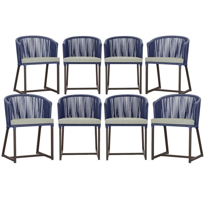8 Cadeiras de Jantar Área Noronha em Alumínio com Pintura Marrom Corda Náutica Estofado 3 Trama Orig Azul