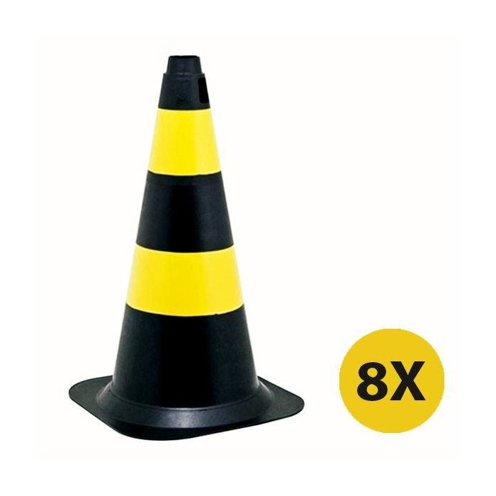 8 Cone Para Sinalização e Segurança 50cm Preto/ Amarelo