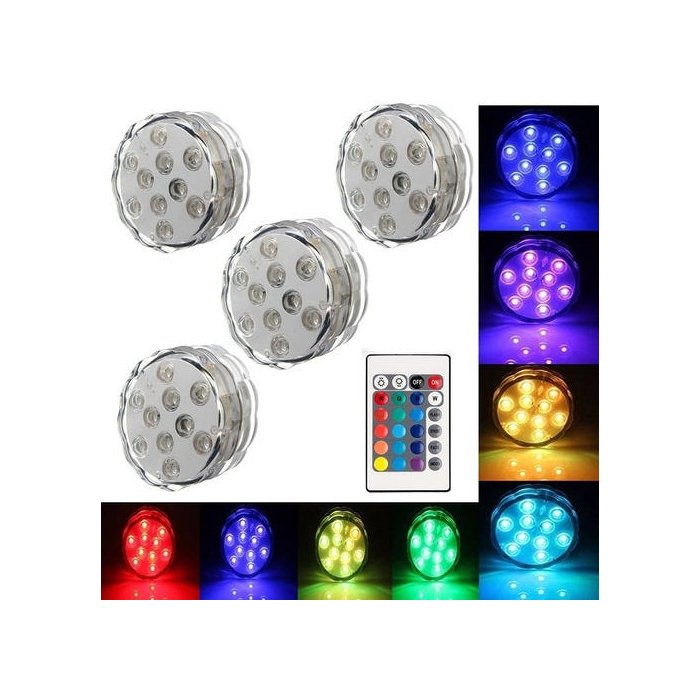 - Potência: 2 .4 watts- Fonte de luz: LED- Quantidade de LED *: 10pcs- À prova d'água: SIM- leds RGB: Sim- Dimensão: 7x3cm- Cor da luz LED: MultiColor- Bateria remota: bat