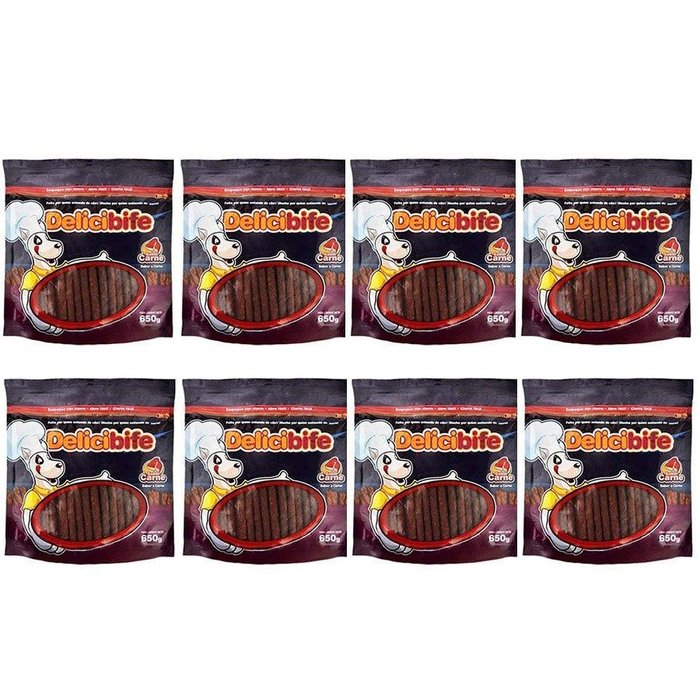 8 Pacotes Bifinho Palito Flexível para Cachorro Delicibife Sabor Carne - 650g
