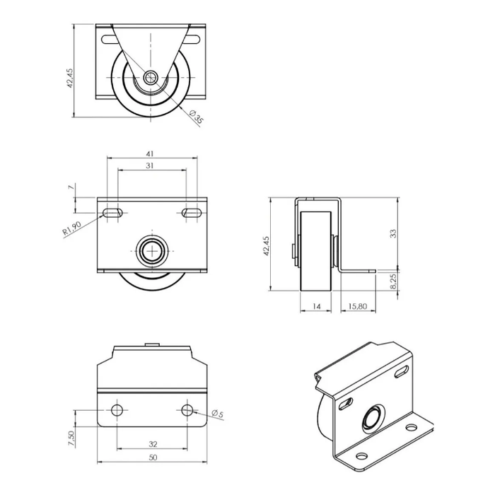 RODÍZIO FIXO EM L PARA CAMA AUXILIAR