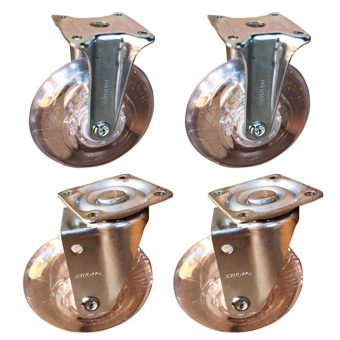 8 Rodizio Roda Fixo FLAP 310 + 8 Giratório Gel GLAP 310 50kg Anti Risco Sem Freio Schioppa incolor