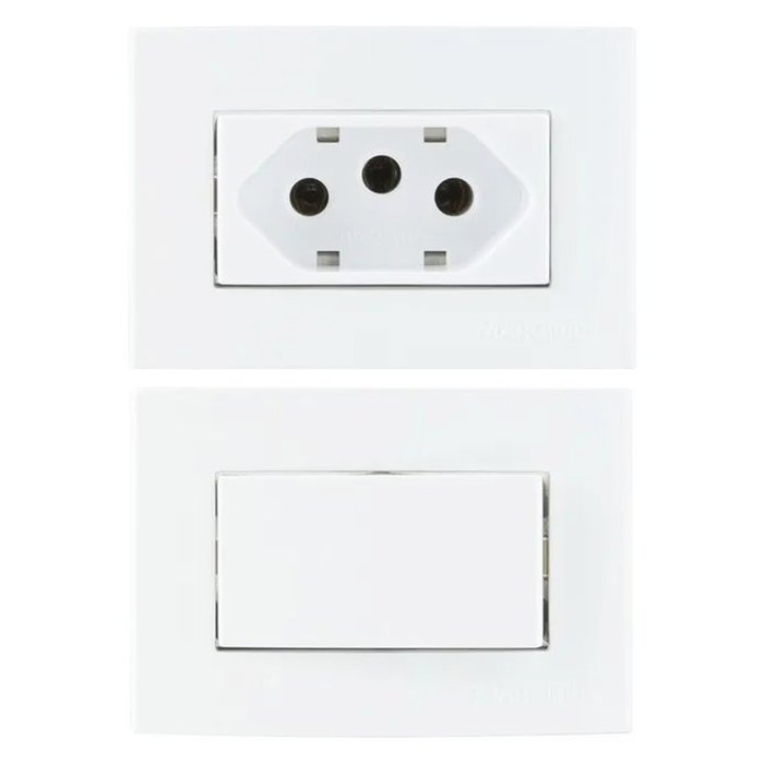 8 Tomada 3 Pinos 20a + 2 Interruptor Paralelo 10a Embutir Móvel Branco Sleek Margirius
