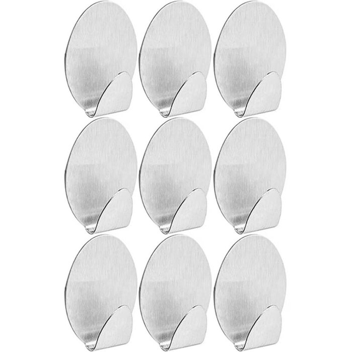 9 Ganchos Adesivos de Parede Aço Inox Ordene Aplik 500g Autocolantes Pequenos Multiuso Ovais Inox