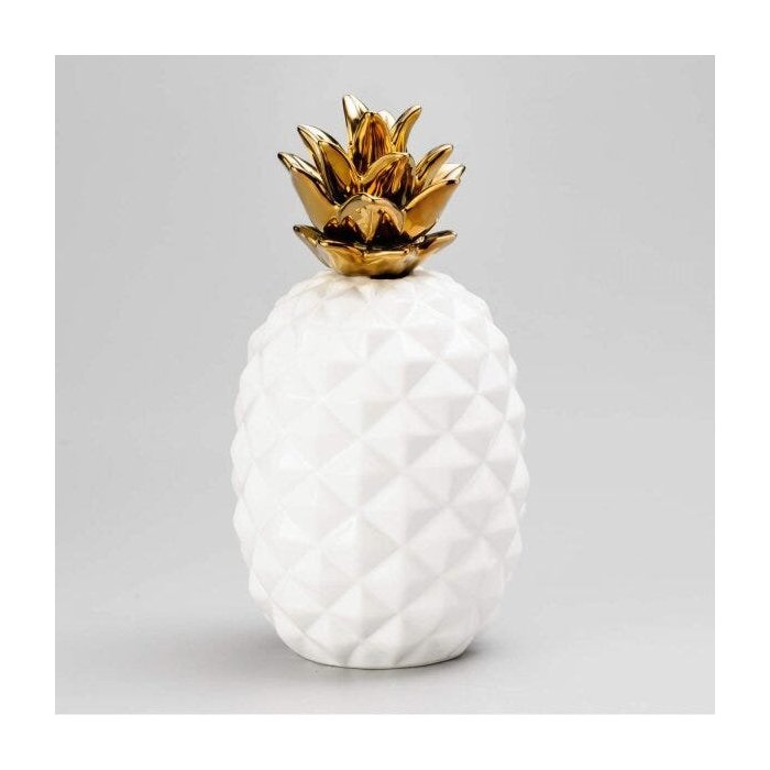 Abacaxi Decorativo de Cerâmica 28cmx20cm Lyor Branco/Dourado