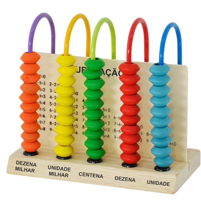 Ábaco em Madeira 5 hastes Material Escolar em Madeira Brinquedo Educativo