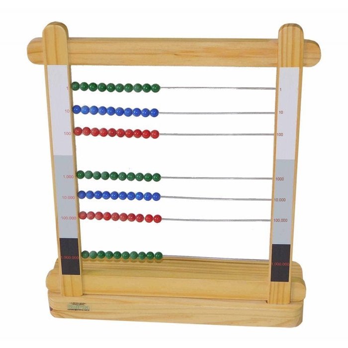 O Ábaco Grande Montessori forma a ponte para a abstração para o exercício do sistema decimal da multiplicação.