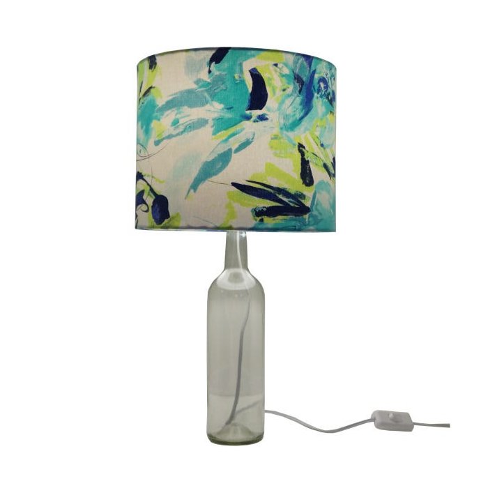 Abajur Base Garrafa Vidro e Cúpula Colorida Praia
