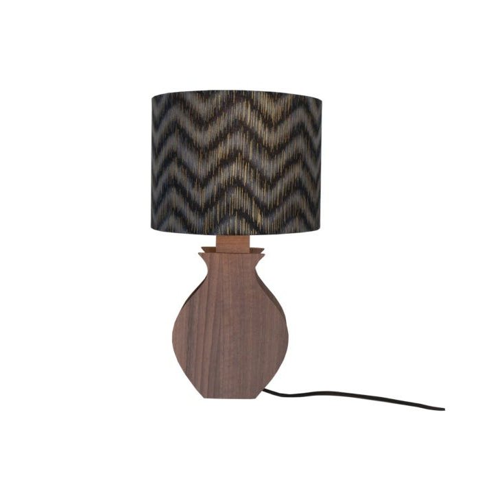 Abajur Base Madeira Vasinho e Cúpula Chevron Preto e Dourado