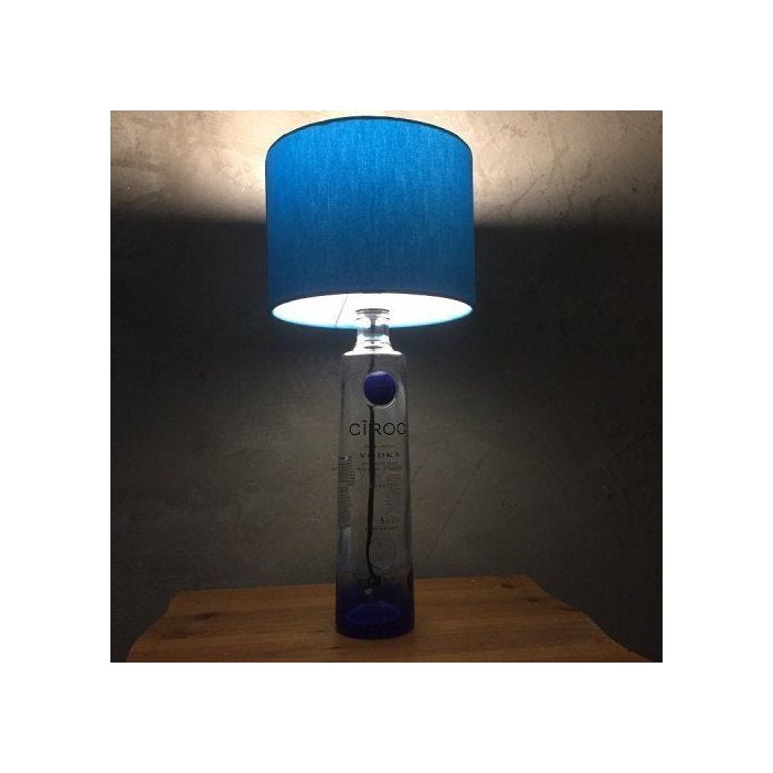 Abajur feito de garrafa de vidro Ciroc original, com cúpula na cor do logo: azul. O fio possuí MODE ON/ OFF.