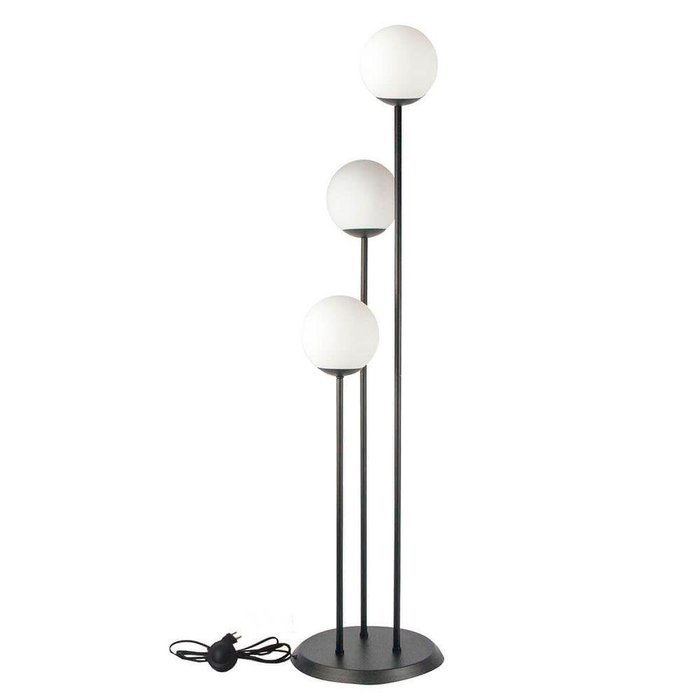 Abajur Coluna Newton 3 Globos Esfera De Vidro Branco - Preto