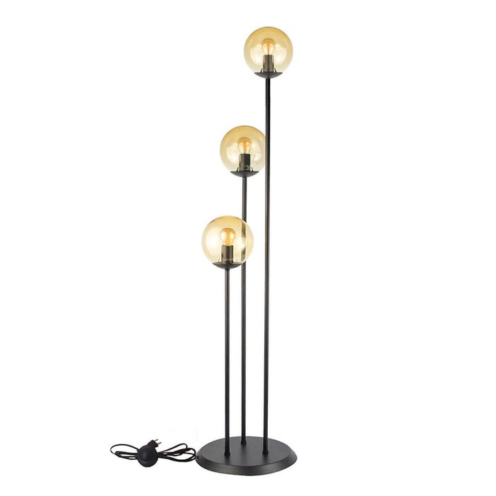 Abajur Coluna Newton Preto C/ 3 Globo Esfera de Vidro Âmbar - 3106-3-Am