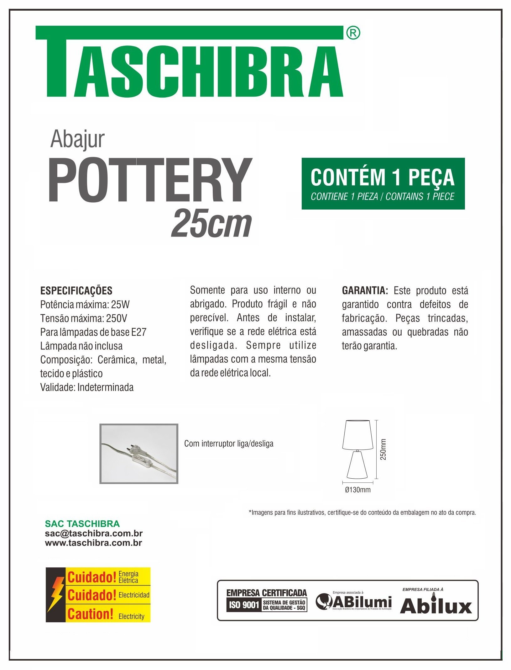 Abajur de Cerâmica Pottery 25cm Para 1 Lâmpada E27 Taschibra