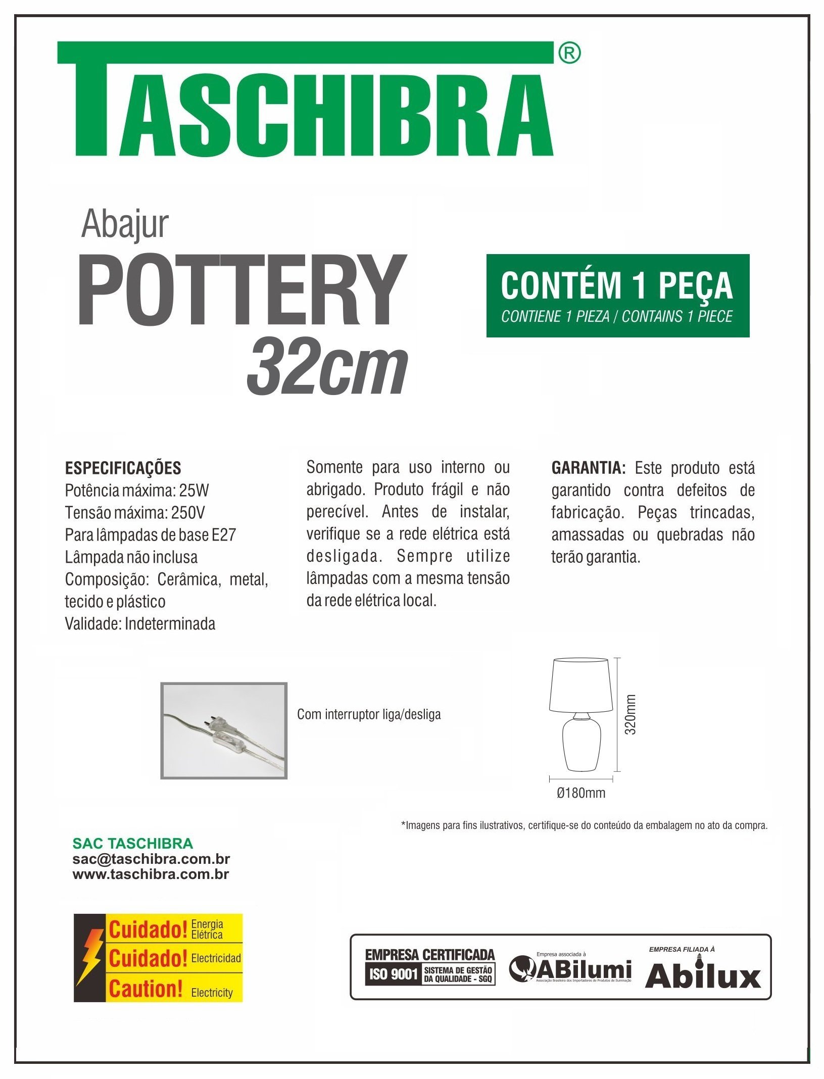 Abajur de Cerâmica Pottery 32cm Para 1 Lâmpada E27 Taschibra