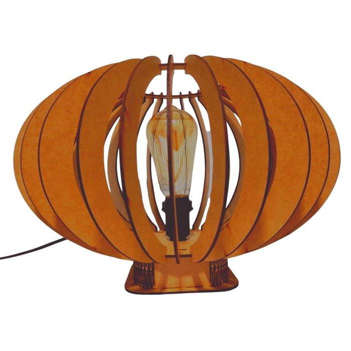Material MDF Cru 3mmFormato aplicado: Conforme ImagemFormato Montado:Altura: 25.00 cmLargura: 37.00 cmAbajur de Mesa em MDF - CompletoAbajur com cabo PP 1m com interruptor e bocal E-27Acabamento: Corte à Laser sem pinturaEnvio: Desmontada