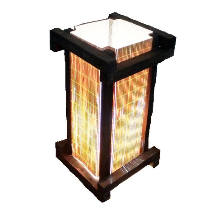 Abajur de Mesa Japonês Rústico com Tela de Bambu é uma peça única, feita com corpo em madeira de reflorestamento e tela de bambu costurada. Ideal para criar um ambiente acolhedor, pode ser colocado em mesas, racks ou cabeceiras de cama. O design permite uma luz indireta suave, evitando ofuscamento. Com a parte superior aberta, projeta uma luz nítida, iluminando o espaço de forma eficaz.