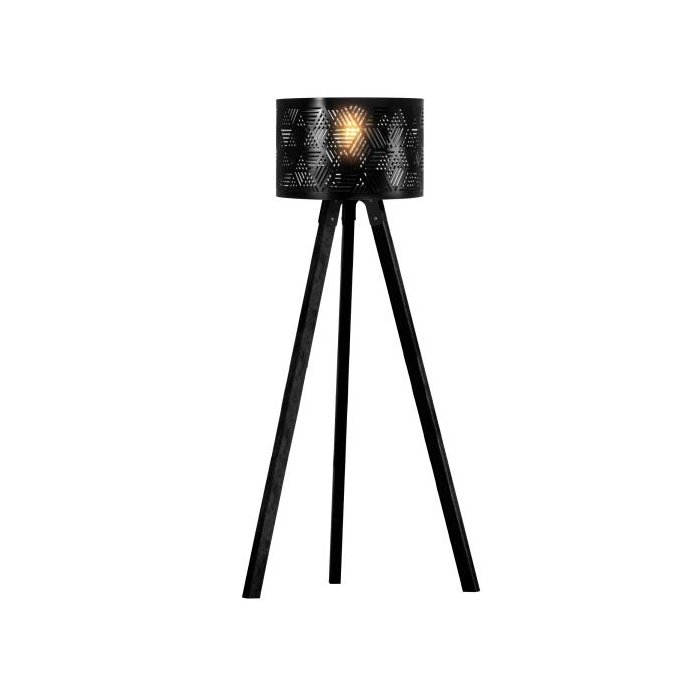 Abajur em Madeira Tripé de Chão Cúpula Vazada Preto Total