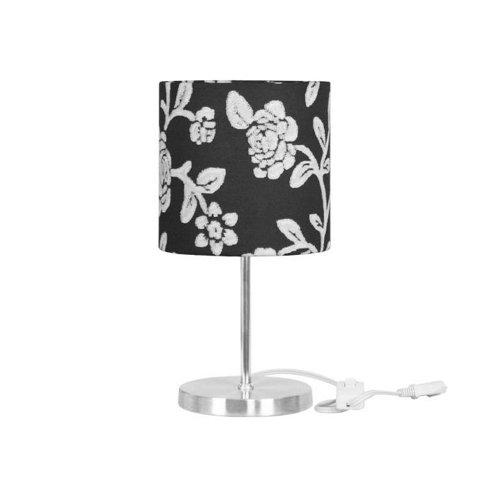 Abajur Eros Cilindrico Floral Prata Base Redonda