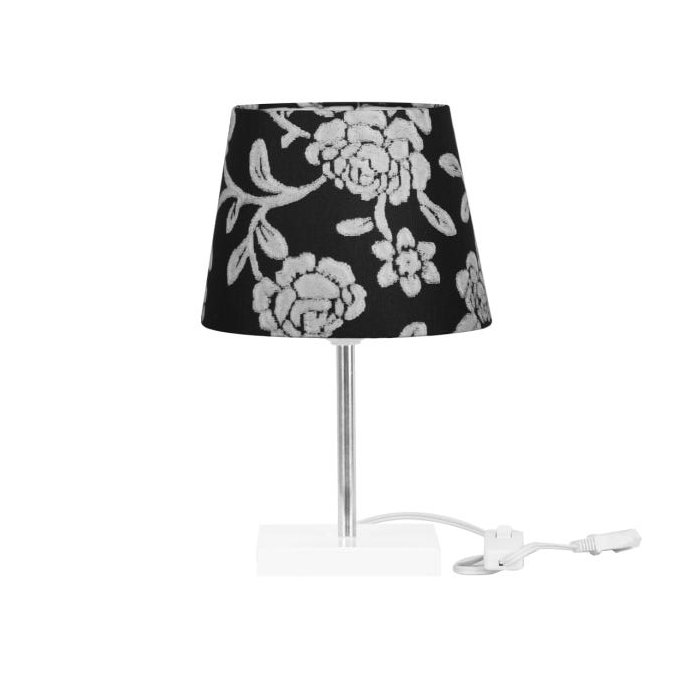 Abajur Eros Dome Floral Prata 032 com Base Branca Quadrada