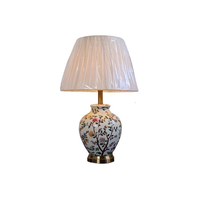 Abajur Luminária Branco Floral Porcelana E Metal 62x40:Branco/Branco Floral