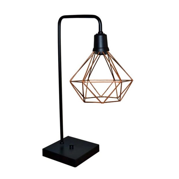 Abajur Luminária de Mesa com Aramado Retro - Preto com Cobre Preto/Cobre