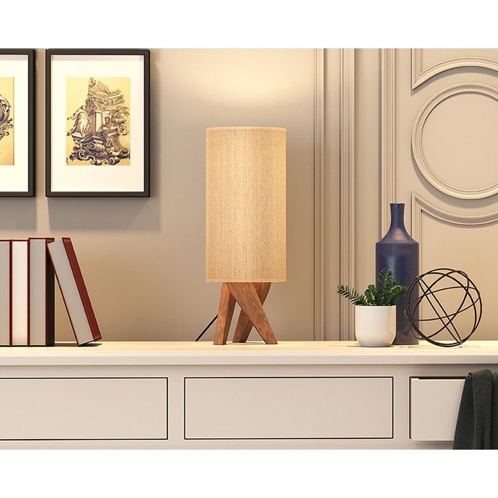 Abajur Luminária Luxo de Mesa Tripé em Madeira Onix Premium com Cúpula Palha BEGE