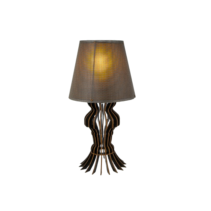 Abajur de mesa confeccionado de forma artesanal em MDF de 3mm, garantindo durabilidade e um acabamento refinado.