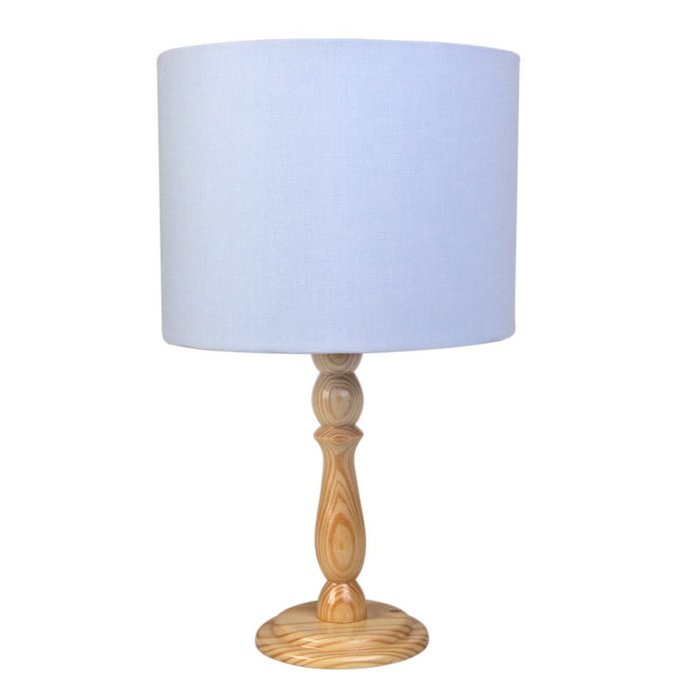 Abajur com base de madeira pinus torneada, pintura com Verniz Incolor, cúpula forrada com tecido.