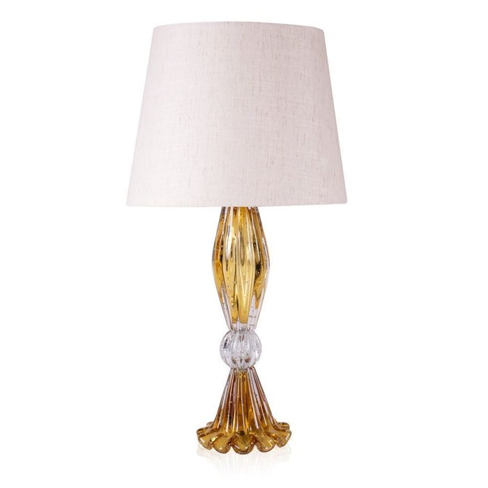 FICHA TÉCNICA: Abajur em cristal de murano. Feito em processo artesanal. Ideal para trazer um toque de sofisticação, requinte e luxo ao ambiente. O Murano é um tipo sofisticado de vidro, resultado de uma técnica artesanal Italiana. Todos os nossos Muranos, são originais feitos através desse processo. São feitos por artesões especializados a partir de movimentos manuais e de sopro. O Murano é um material muito mais luxuoso e único, do que cristais comuns. Simplesmente maravilhoso! Composição: 01 Abajur Murano Nilo Ambar. **(Cúpula não inclusa, produto vendido separadamente) Dimensões: Altura da base em cm (sem cúpula): 43 (cm) Diâmetro: 18 (cm) **Voltagem Bivolt (110V/220V) Dimensões da cúpula: Altura da cúpula cm: 30(cm) Diâmetro: 20(cm) Formato: Redonda Cores: Linho Cru / Preta e Branca. Peso aproximado: 5,05 kg Material: Cristal de Murano Fabricante: Labone Informações Adicionais: Cada peça é única, podem ocorrer pequenas variações de tamanho e cor, devido ao seu processo de fabricação artesanal.