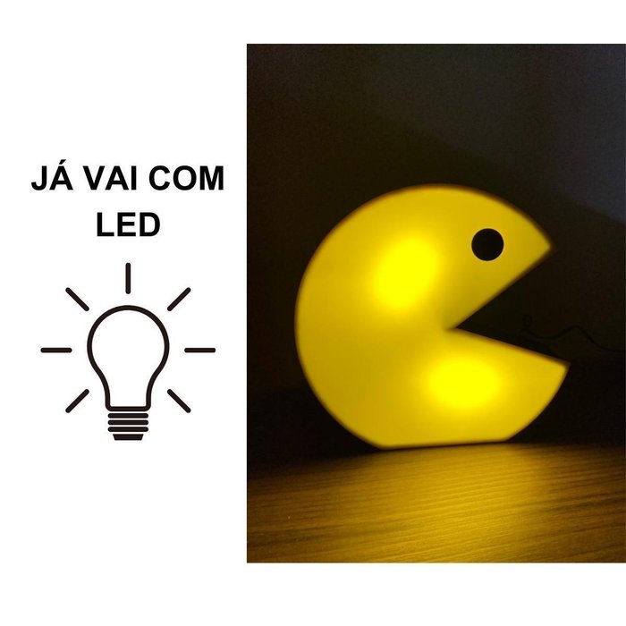 Além de ser uma opção de iluminação, essa luminária também é uma peça de decoração incrível. Com o formato icônico do Pacman, ela adiciona um toque de personalidade e diversão ao ambiente. Seja no quarto, na sala de estar ou no escritório, ela certamente será o centro das atenções.