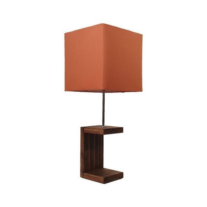 Abajur quadrado Laranja Flamingo para sala ou quarto com base em Madeira de Reflorestamento no formato Meia Lua. Tecido da cúpula 100% Algodão (Nacional), Armação em Aço Inoxidável (100% Nacional). Genuinamente Brasileiro (Série: Artistas Brasileiros). Marca Rei do Abajur.