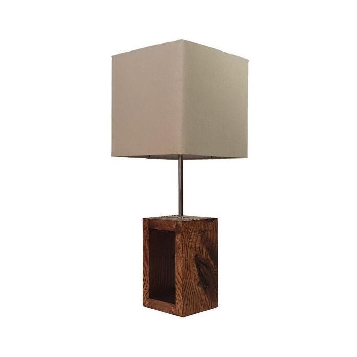 Abajur quadrado Marrom Peyote para sala ou quarto com base em Madeira de Reflorestamento no formato Retangular. Tecido da cúpula 100% Algodão (Nacional), Armação em Aço Inoxidável (100% Nacional). Genuinamente Brasileiro (Série: Artistas Brasileiros). Marca Rei do Abajur.