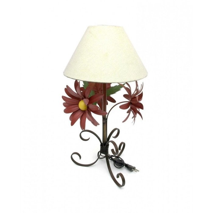 Abajur Rustico Quarto de Casal em Ferro Artesanal com Flores - Vermelho Escuro