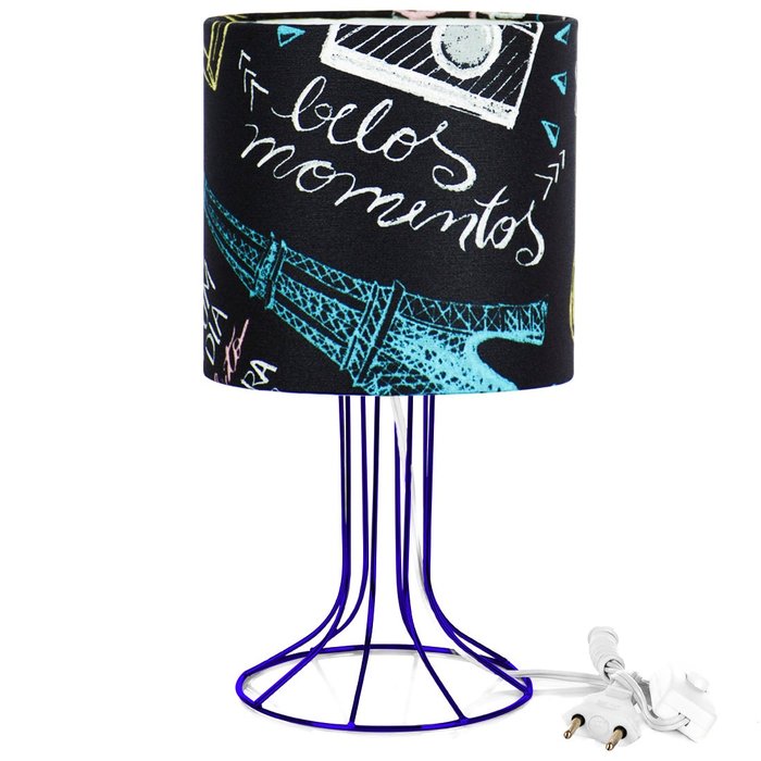 Abajur Torre Cilindrico Parede Giz com Aramado Azul