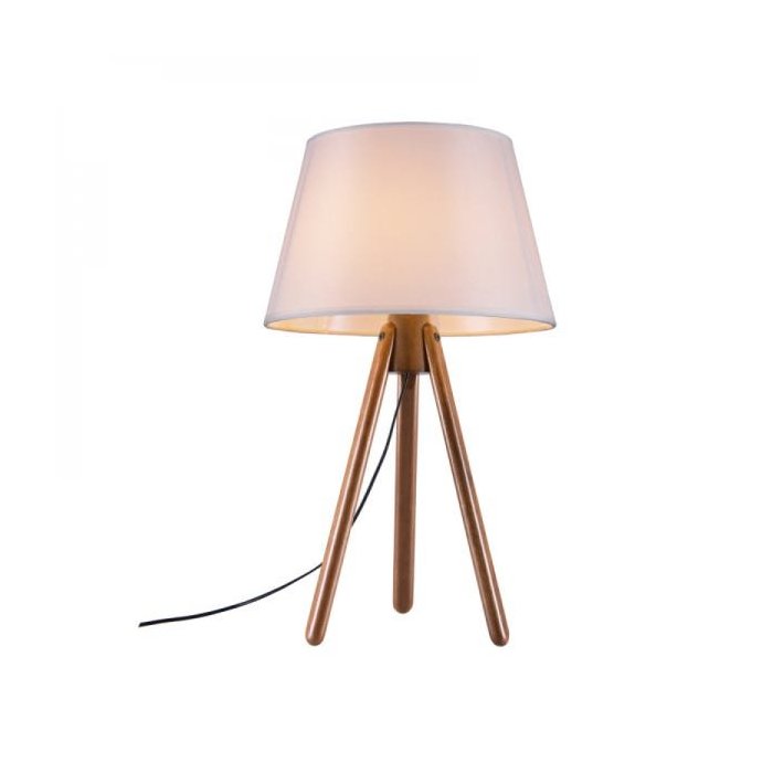 Abajur Trippé Madeira Castanho Cúpula Algodão Cru Madelustre Castanho
