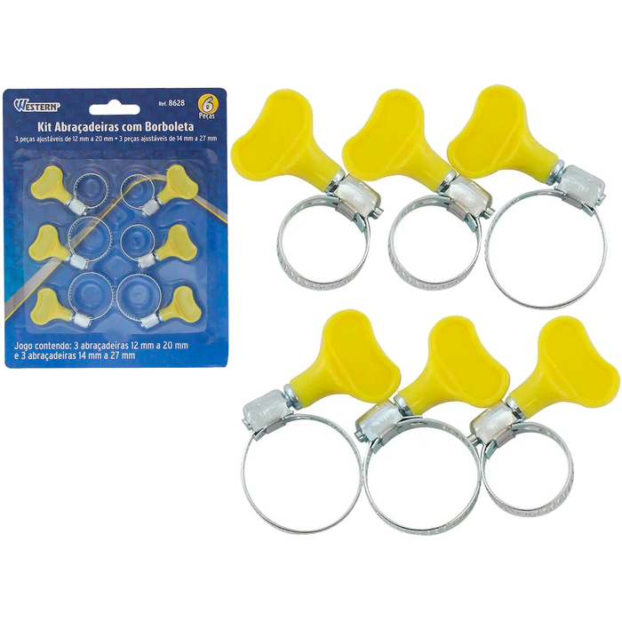 Abraçadeira Alumínio C/ Borboleta 6 Peças Ajustáveis